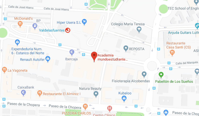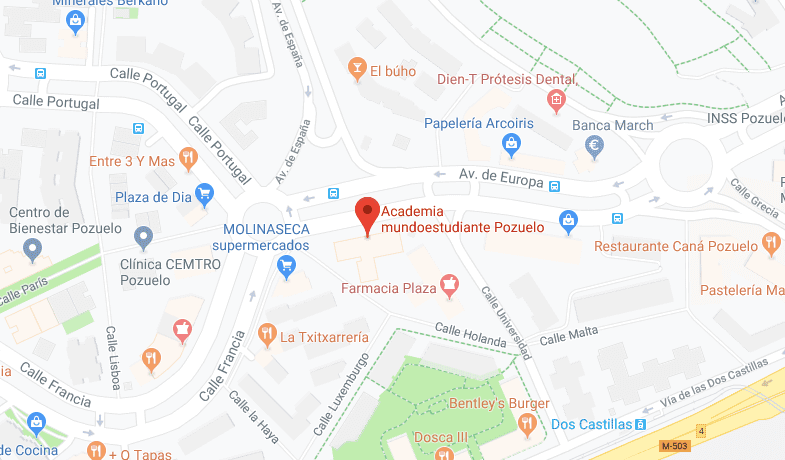 En pleno proyecto de expansión nacional, mundoestudiante cuenta actualmente con 12 academias de enseñanza en toda España, con 6 sedes en Madrid, una en Pozuelo, Alcobendas, Majadahonda, Alcalá de Henares y Alcorcón. Además contamos con sede también en Valladolid.