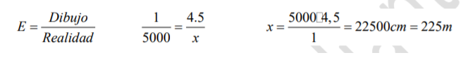 - En un plano a escala E 1:5000 la linde de una parcela está representada por un segmento de 4,5 cm. ¿Cuál es la longitud en la realidad?