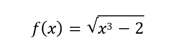 La función “f(x)” es la que a cada número se lo eleva al cubo, luego se le resto 2 y por ultimo al resultado se le aplica la raíz cuadrada.
