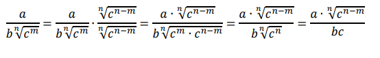Para eliminar la raíz del denominador hay que multiplicar numerador y denominador por la raíz n-ésima con el radicando elevado a la diferencia entre el índice de la raíz y su exponente: